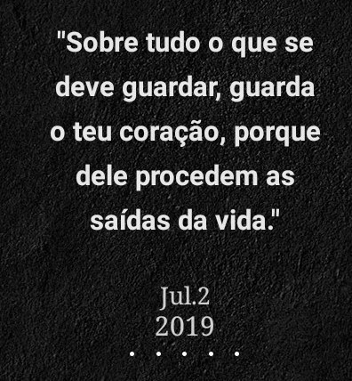 Todos os dias acordamos com uma série de pensamentos e é incrível como essa máquina chamada cérebro não para! É inevitável que os pensamentos surjam e com certeza um bom cientista saberá nos explicar o motivo (risos). Logo pela manhã lembrei de provérbios 4:23 e encontrei uma outra tradução: "Tenha cuidado com o que você... Continuar Lendo →